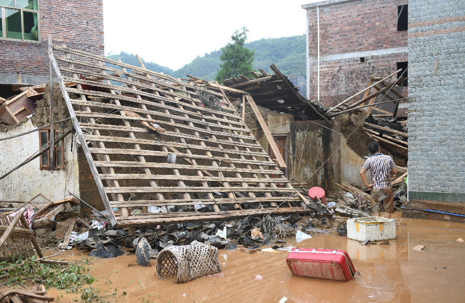 Photo taken on June 11, 2019 shows a collapsed house in Xiadong Village, Heyuan City, south China's Guangdong Province. (Xinhua)