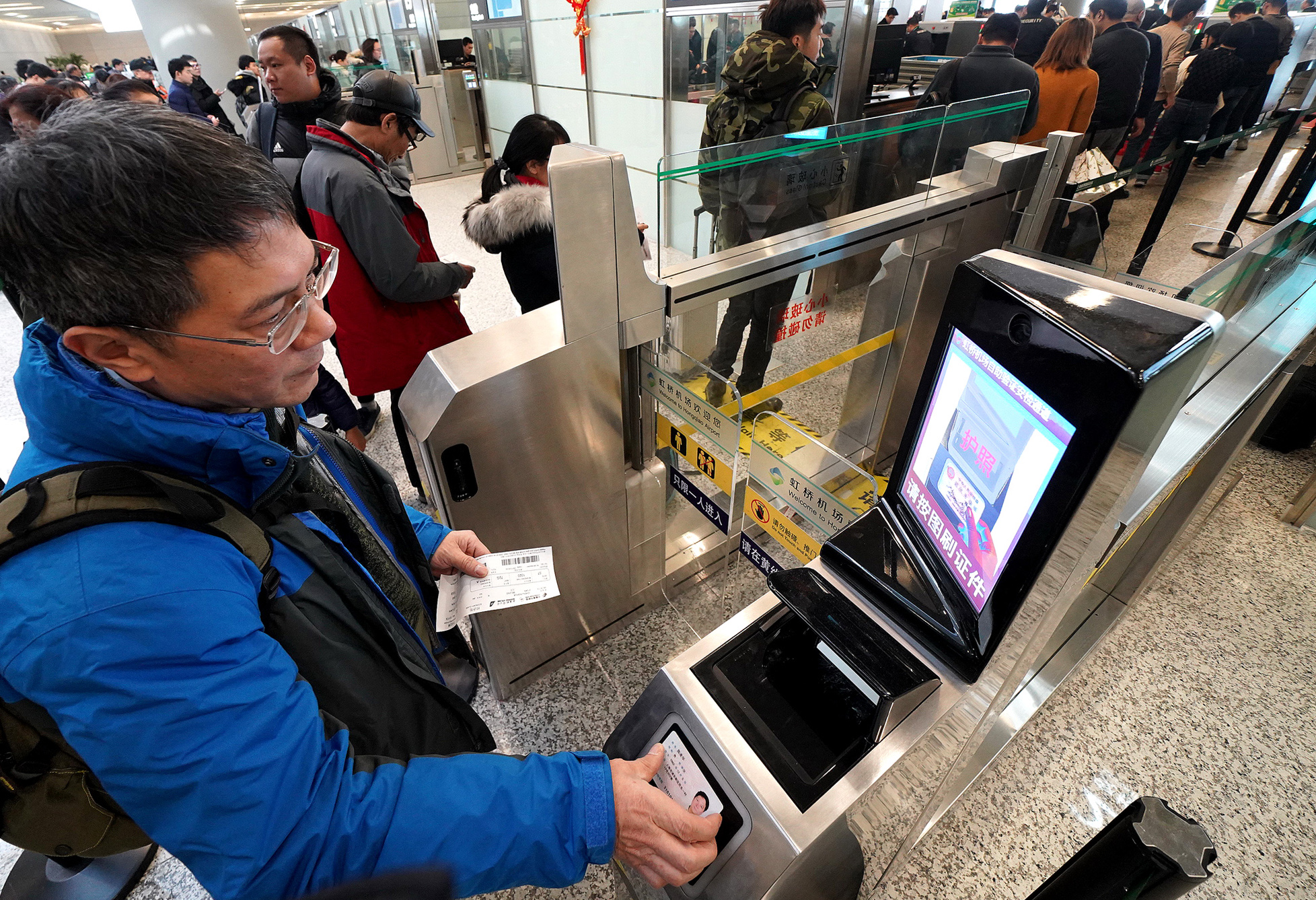 Passengers were using the self-service check-in equipment at Shanghai Hongqiao International Airport in the 2019 Spring Festival travel rush. (Xinhua/Chen Fei)