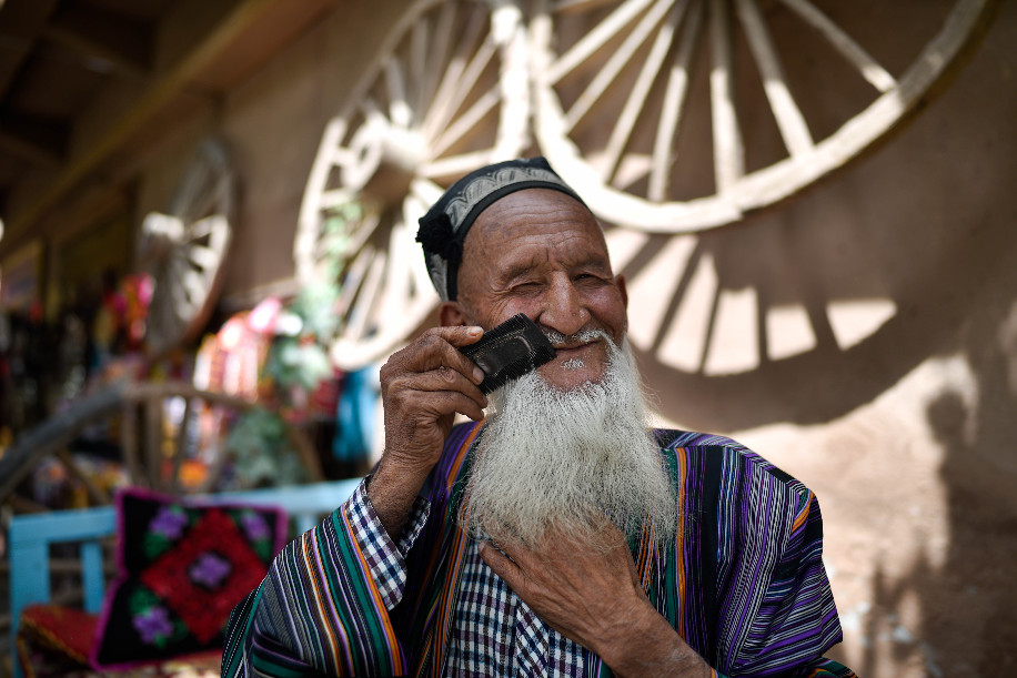 An elderly takes a rest in the ancient city of Kashgar, northwest China's Xinjiang Uygur Autonomous Region, June 12, 2019. (Xinhua/Zhao Ge)