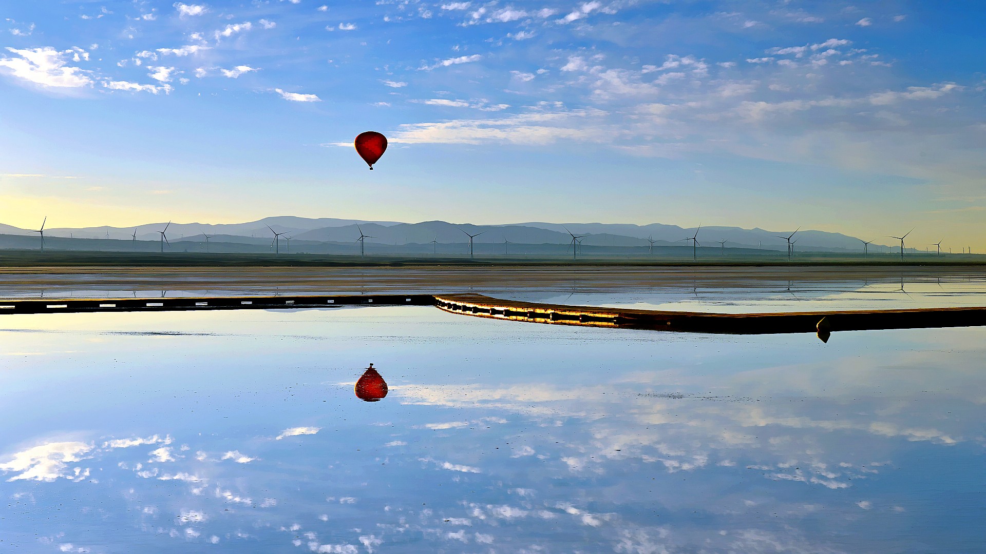 Photo taken on July 5, 2019 shows an air balloon at the Chaka Salt Lake in northwest China's Qinghai Province.