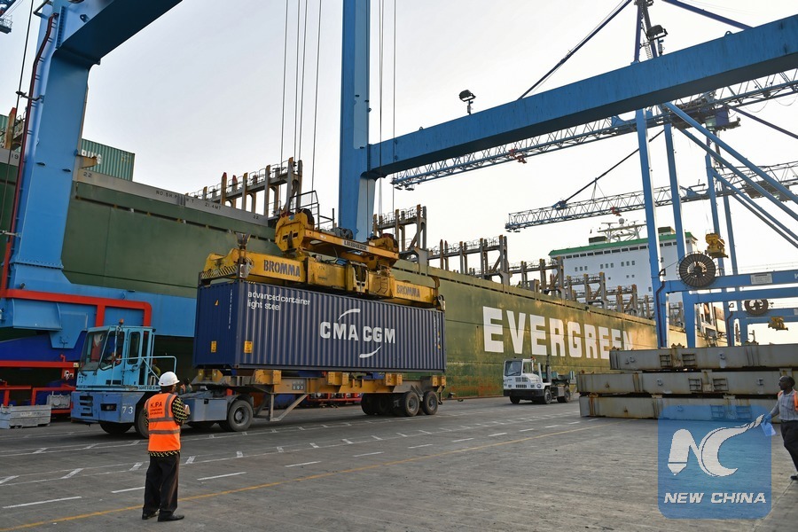 A container is unloaded from a ship in Mombasa Port, Mombasa, Kenya, in this file photo taken on Jan. 10, 2017. An agreement to launch the African Continental Free Trade Area (AfCFTA) was signed on Wednesday, thus creating the largest free trade area on the world's poorest inhabited continent. (Xinhua/Sun Ruibo)