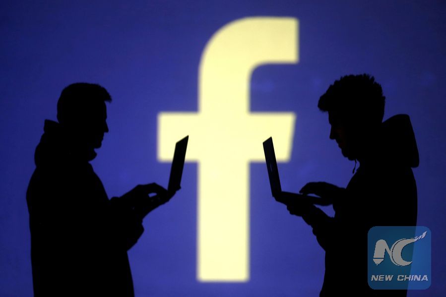 File Photo: Silhouettes of laptop users are seen next to a screen projection of Facebook logo in this picture illustration taken March 28, 2018. (Xinhua/REUTERS)