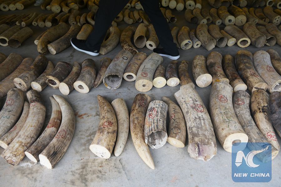 Photo shows the seized elephant ivory in Singapore on July 23, 2019. (Xinhua/Then Chih Wey)