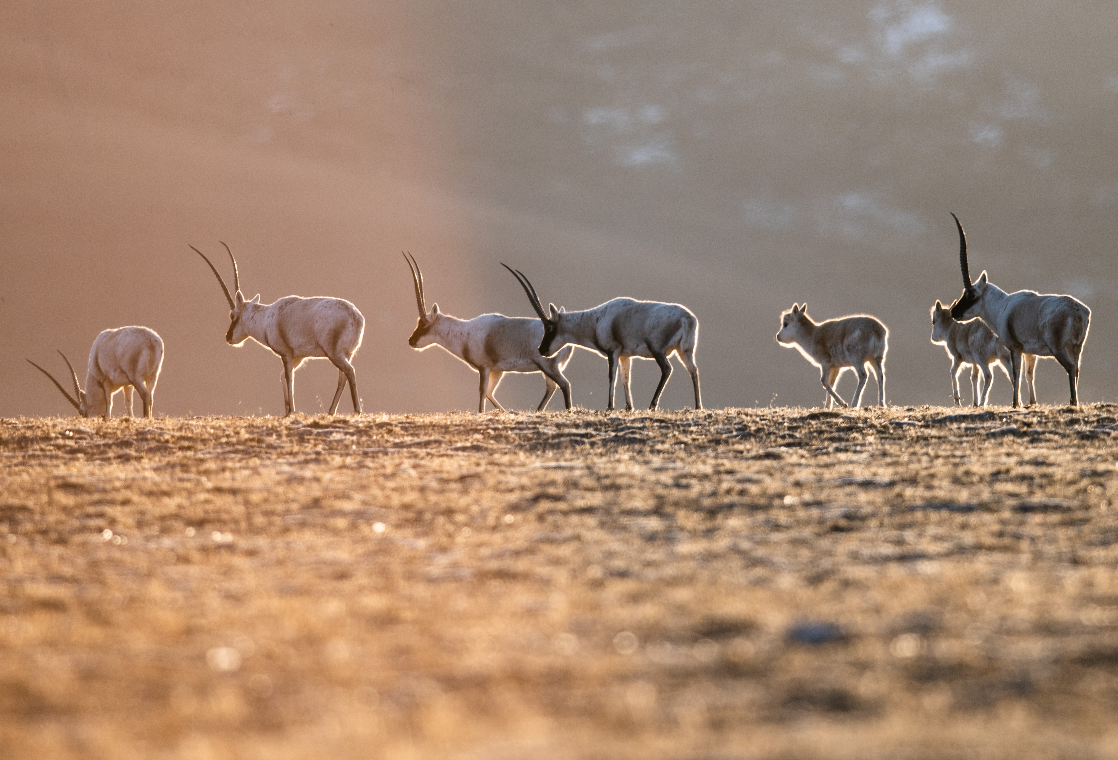 Tibetan antelopes in Qiangtang National Nature Reserve in southwest China's Tibet Autonomous Region. (Xinhua/Purbu Zhaxi)