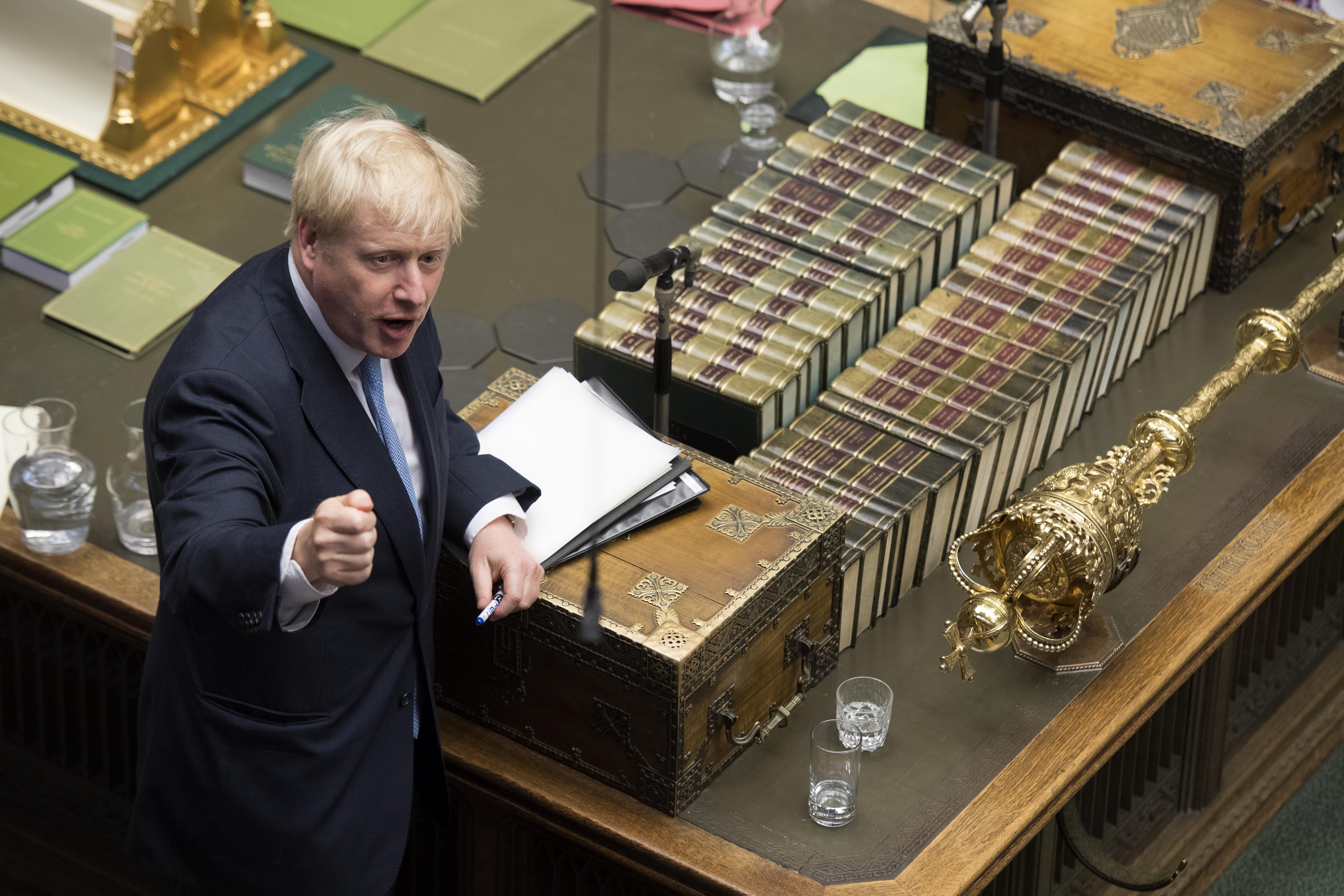 British Prime Minister Boris Johnson makes his first statement in the House of Commons in London, Britain, on July 25, 2019. (Jessica Taylor/UK Parliament/Handout via Xinhua)