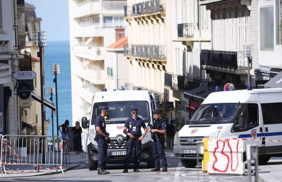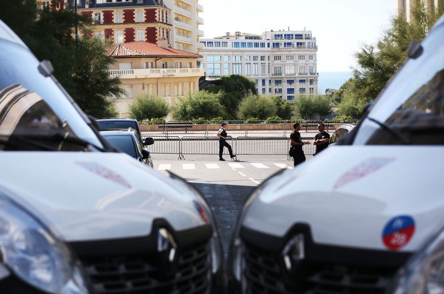 Policemen stand guard in Biarritz, southwestern France, on Aug. 23, 2019. (Xinhua/Gao Jing)