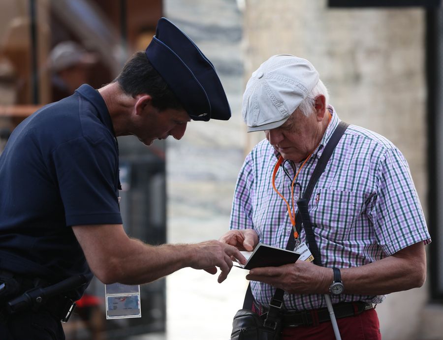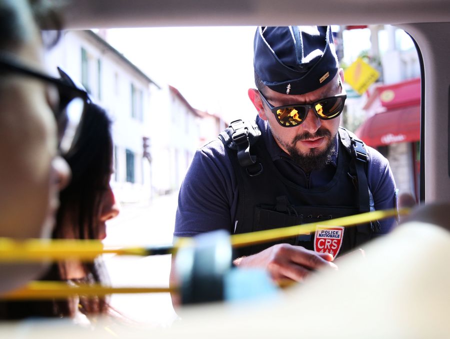 A policeman checks identity cards in Biarritz, southwestern France, on Aug. 23, 2019. (Xinhua/Gao Jing)