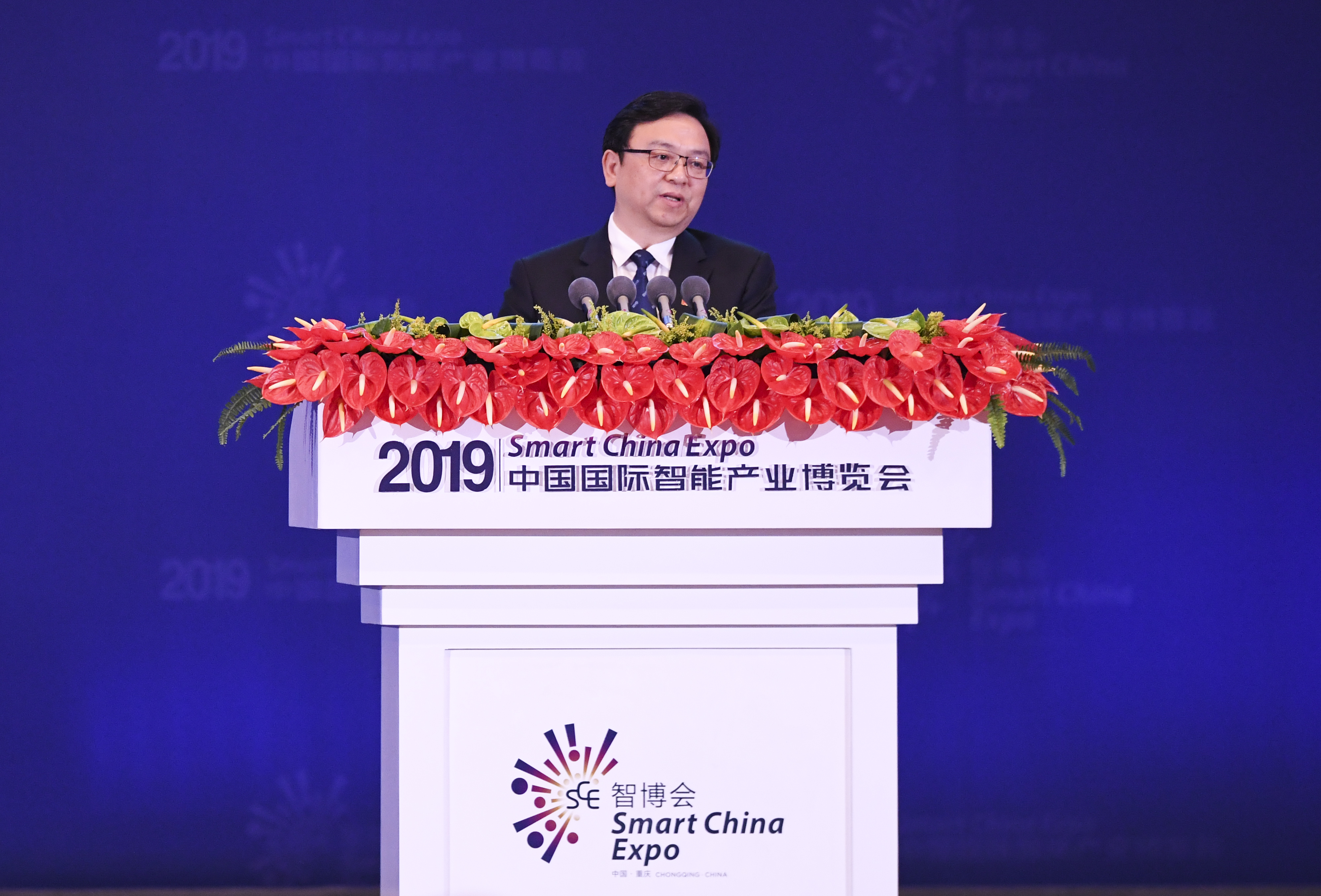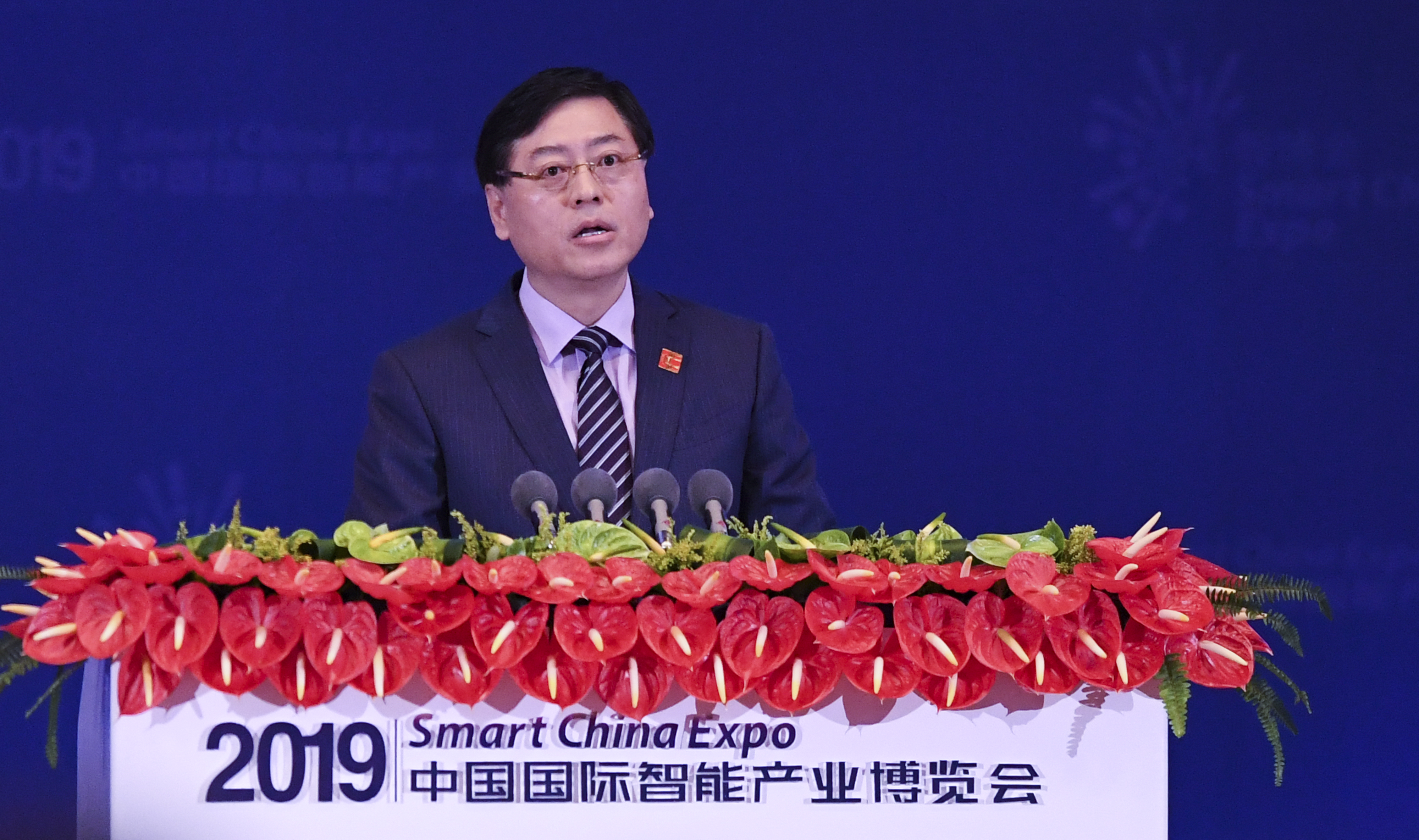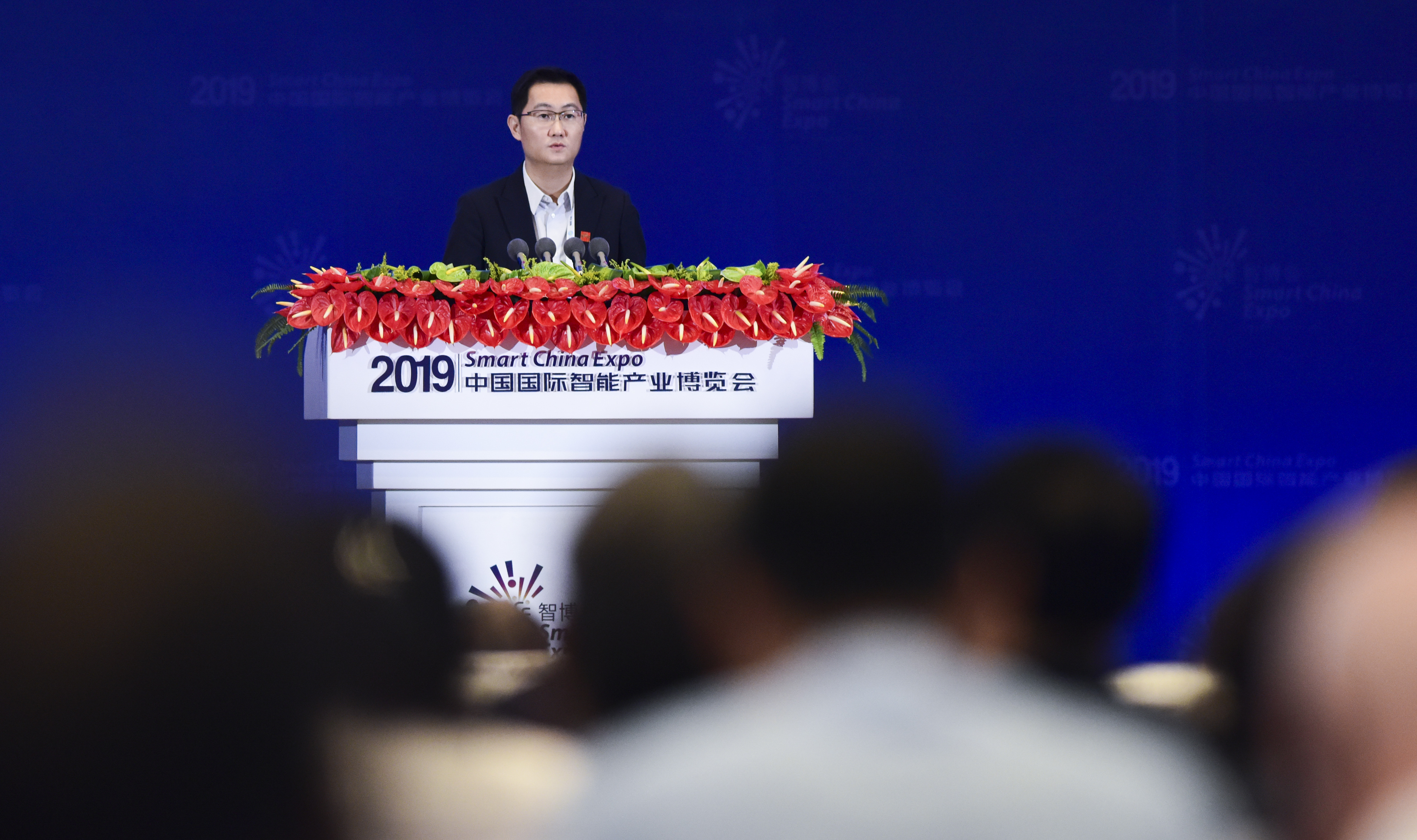 Ma Huateng, Chairman of the Board and Chief Executive Officer of Tencent, delivers a keynote speech at the Big Data and Smart Technology Summit of the 2019 Smart China Expo in southwest China's Chongqing Municipality, Aug. 26, 2019. (Xinhua/Wang Quanchao)