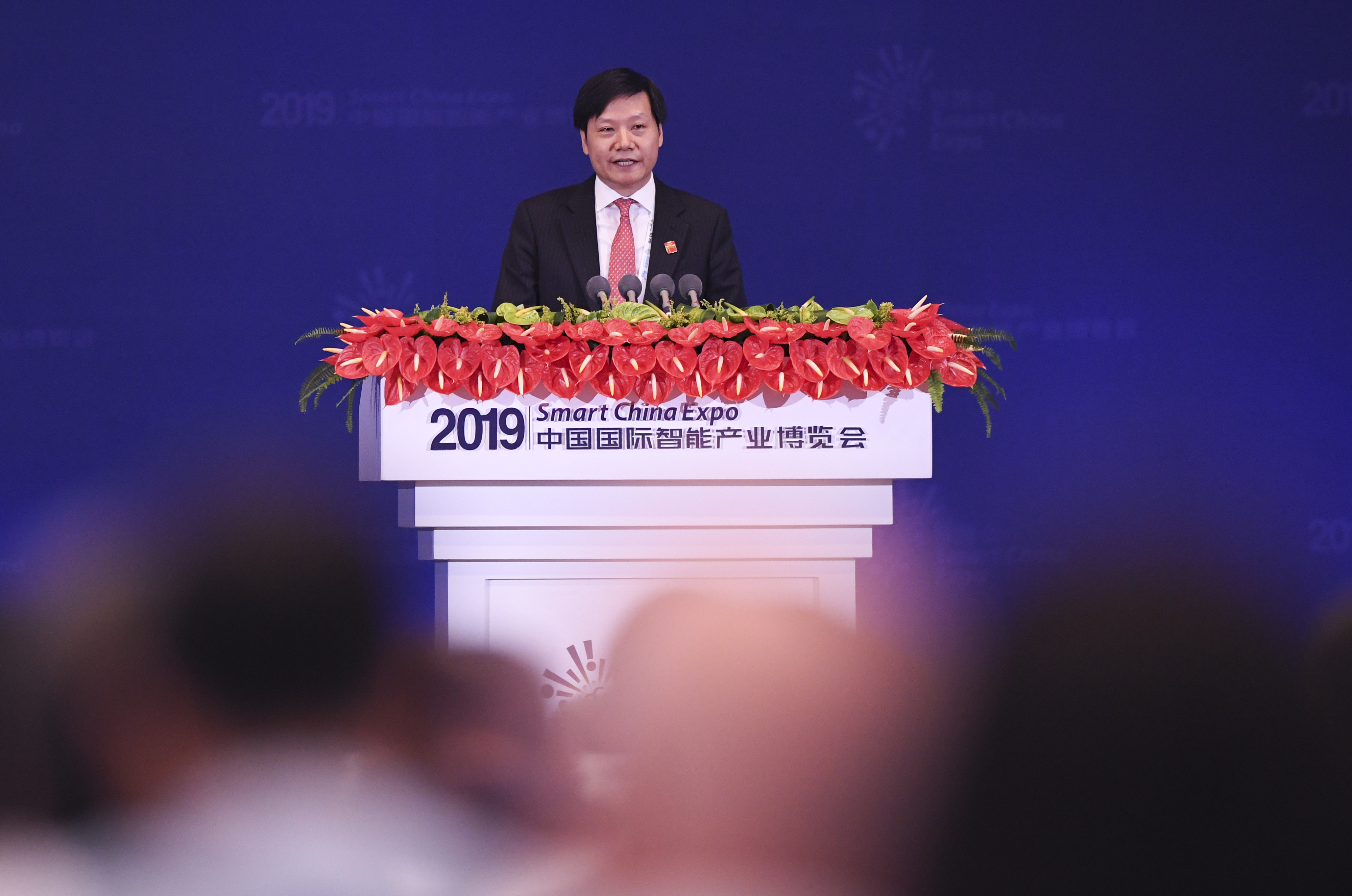 Lei Jun, Chairman and CEO of Xiaomi Corporation, delivers a keynote speech at the Big Data and Smart Technology Summit of the 2019 Smart China Expo in southwest China's Chongqing Municipality, Aug. 26, 2019. (Xinhua/Wang Quanchao)