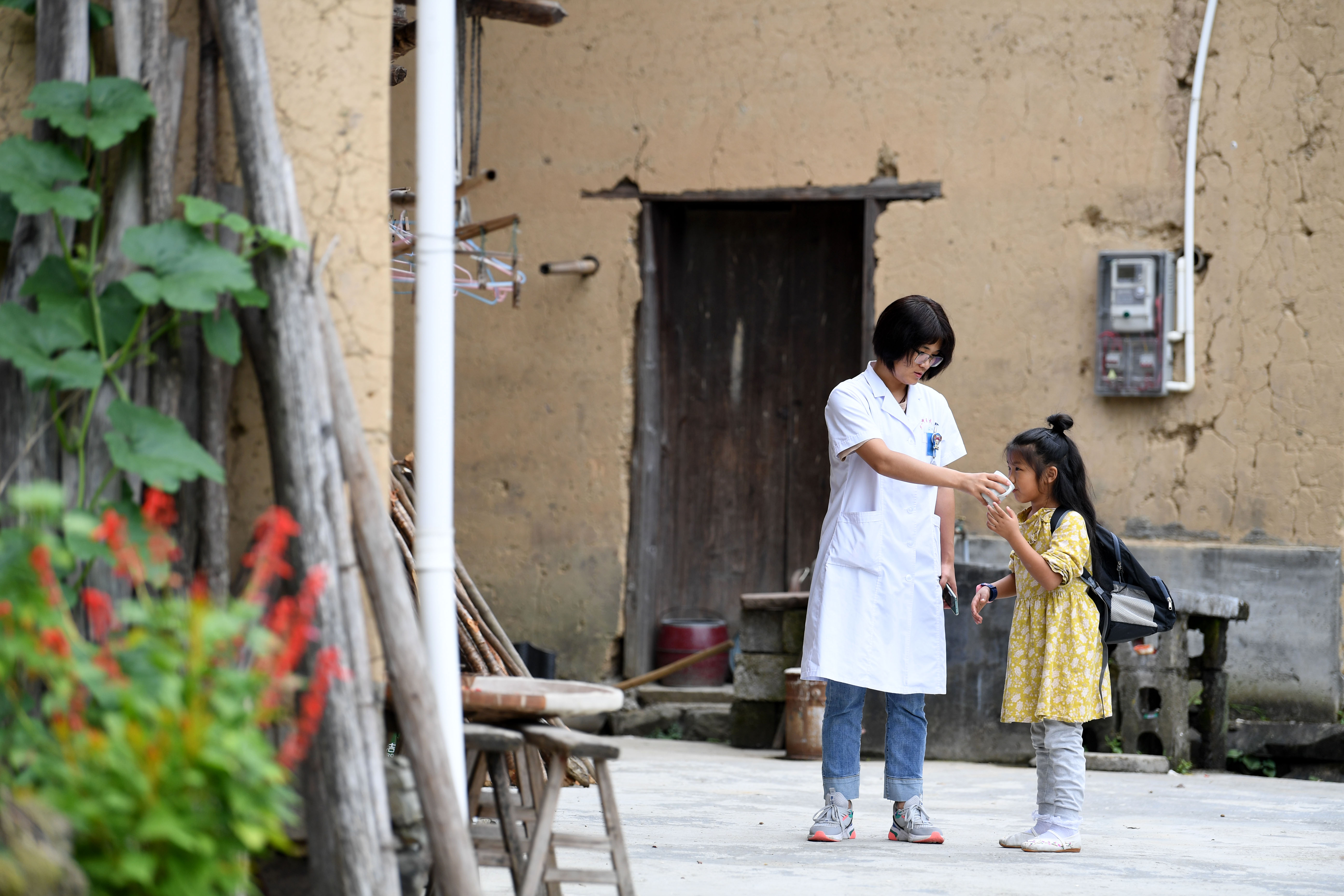 The 7-year-old girl Zhang Qingyu has a special new semester as she follows her parents who provide medical services for villagers to Huangjian Township in E China's Anhui.