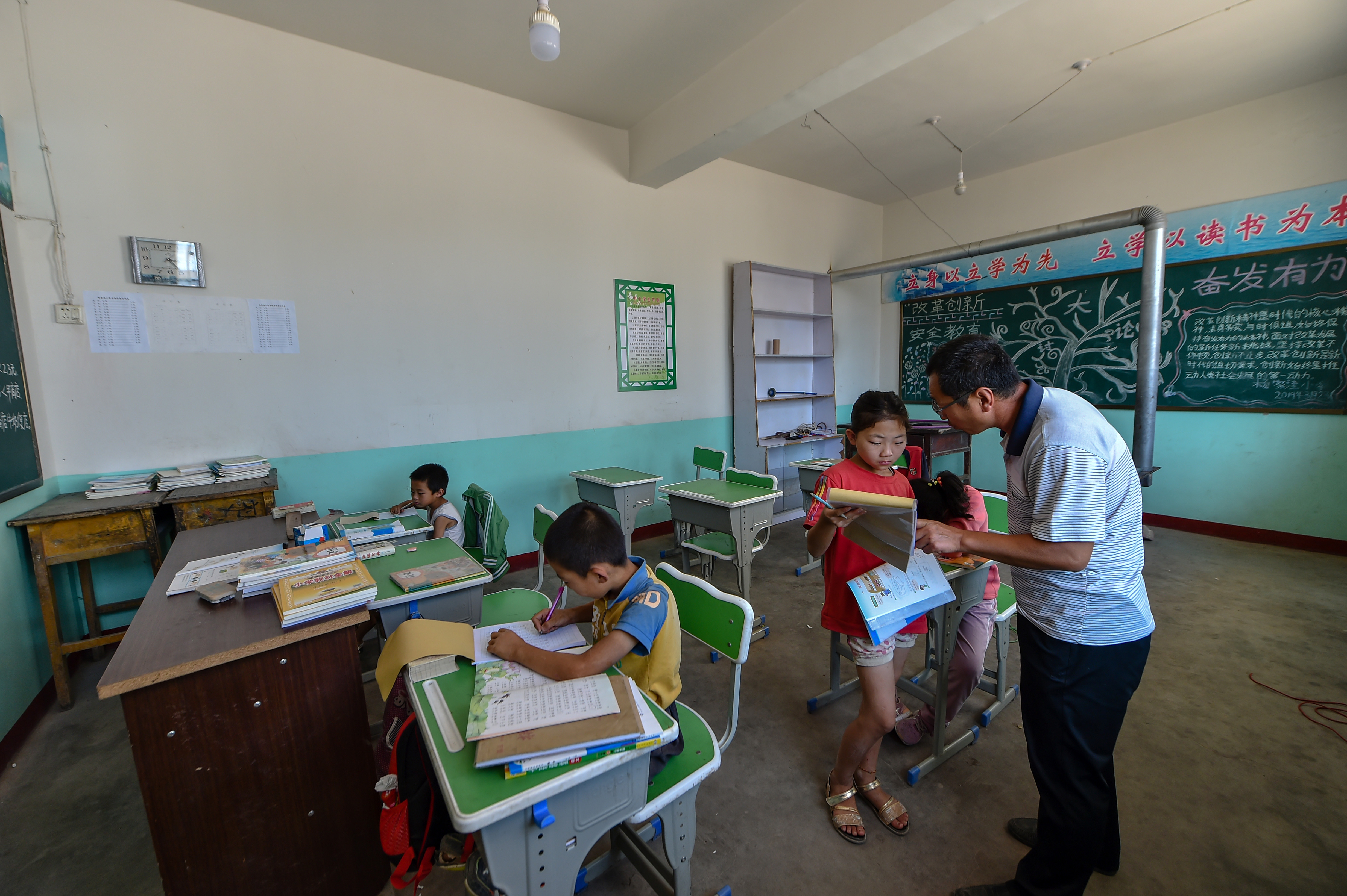 Wang Fuping, 39, has been working as a rural teacher for 19 years at several rural primary schools. In 2007, Wang offered to teach at the Yangjiawa primary school when he learned the teacher here retired. Since then he has been the only teacher of the school. For the past 12 years, Wang Fuping has devoted himself to his work at the school, seeing several batches of students graduating.