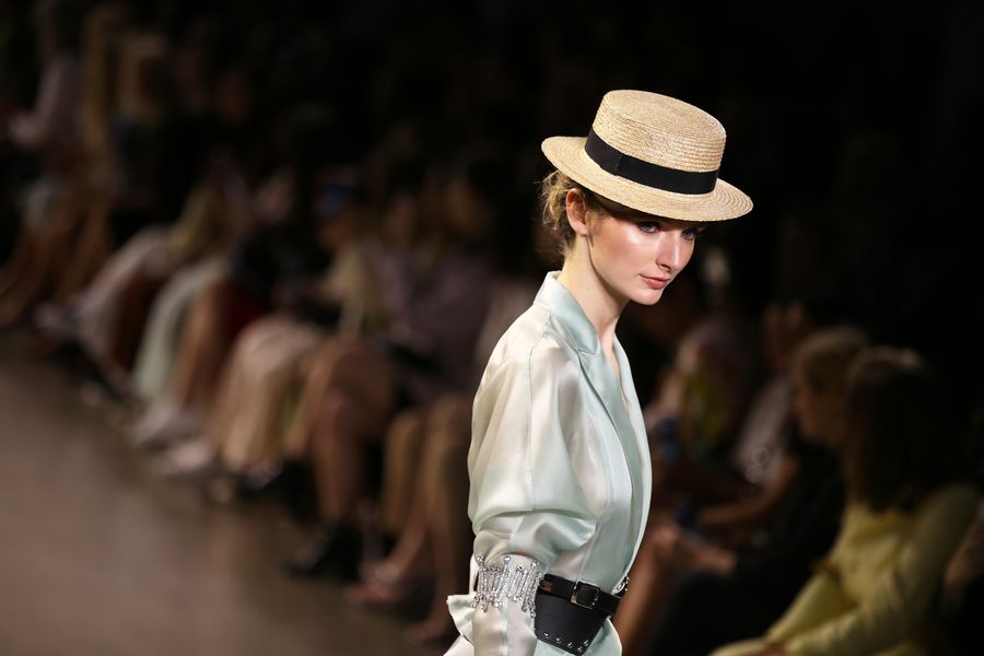 A model presents a creation from the Taoray Wang Spring/Summer 2020 collection during the New York Fashion Week in New York, the United States, Sept. 7, 2019. (Xinhua/Qin Lang)