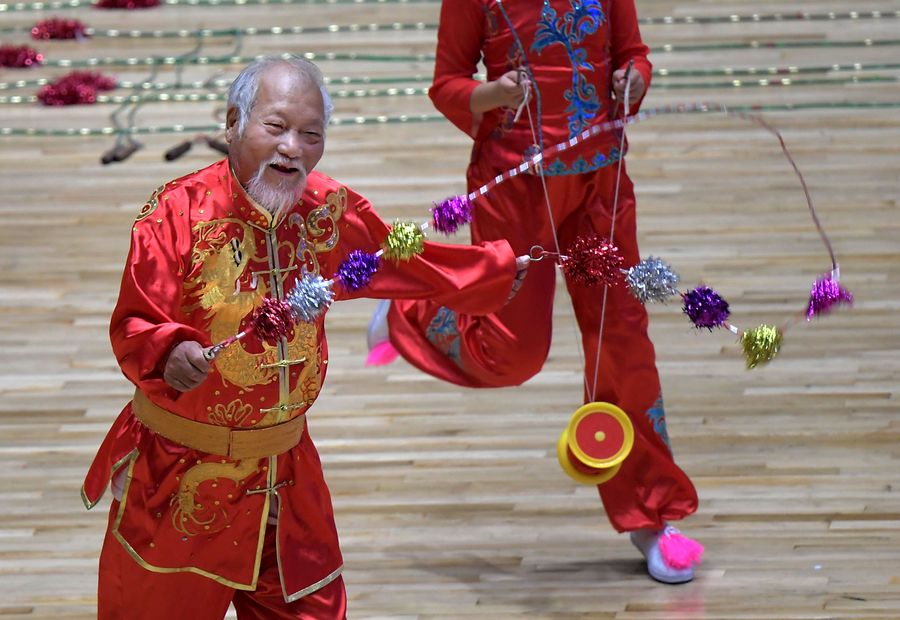 ZHENGZHOU, Sept. 15 (Xinhua) -- 81-year-old Hu Anmin used to perform Chinese rope skipping alone at China's Ethnic Games, but not anymore.
