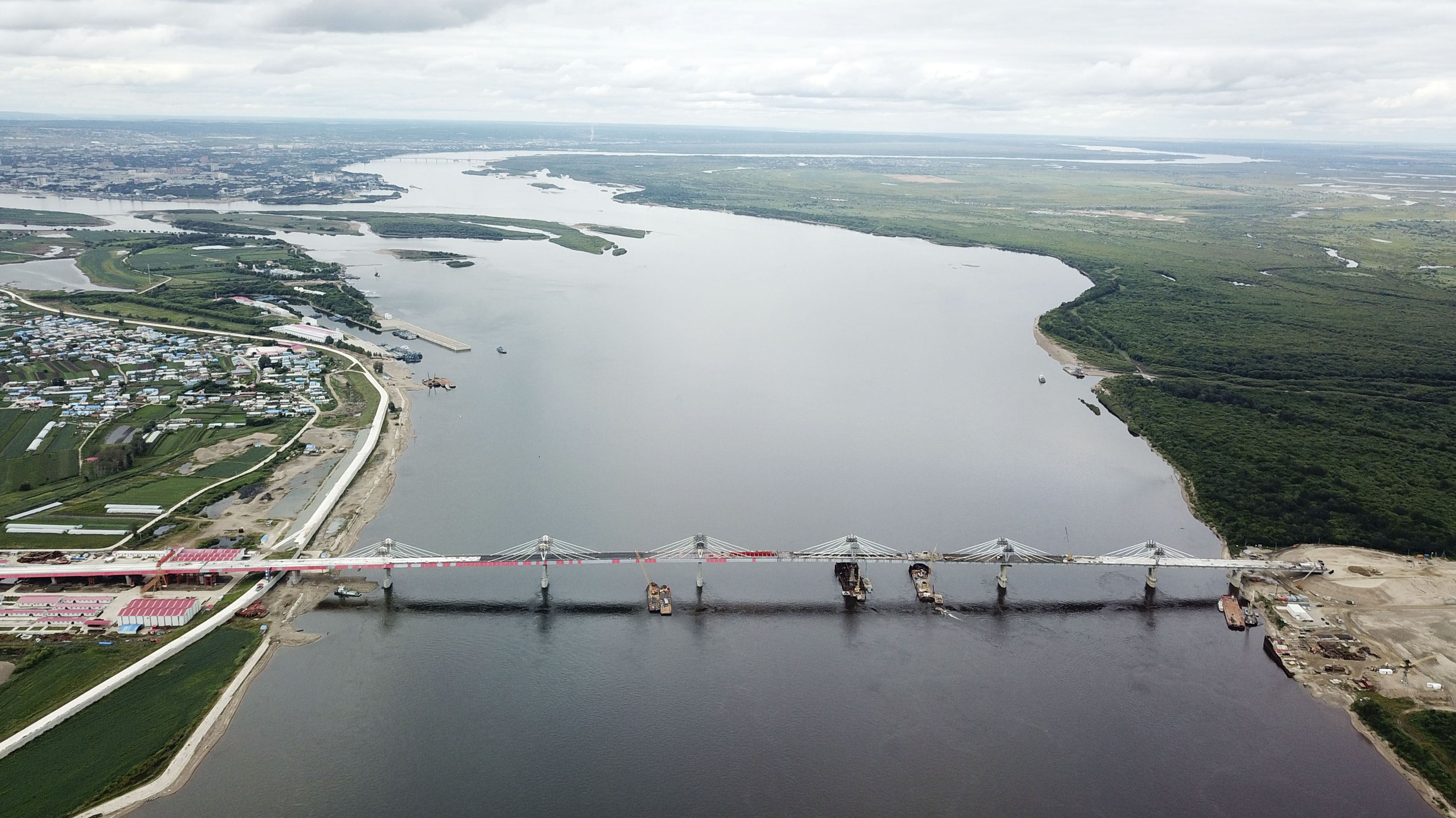 With a length of 1,284 meters and a width of 14.5 meters, the Blagoveshchensk-Heihe highway bridge is a key part of a 19.9 km-long highway project that links the Jilin-Heilongjiang expressway in northeast China and a highway in Blagoveshchensk.