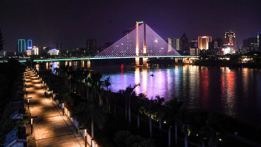 The night view of Baisha Bridge in Nanning, Sept. 20, 2019. (Xinhua/Zhang Ailin)
