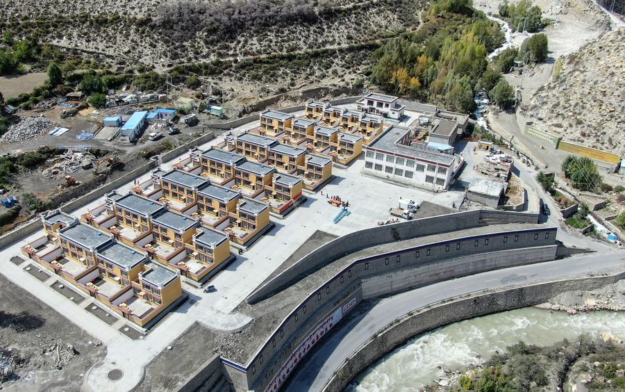 The government-funded dwellings in Lhozhag Town of Lhozhag County, Shannan City, Sept. 21, 2019. (Xinhua/Jigme Dorje)