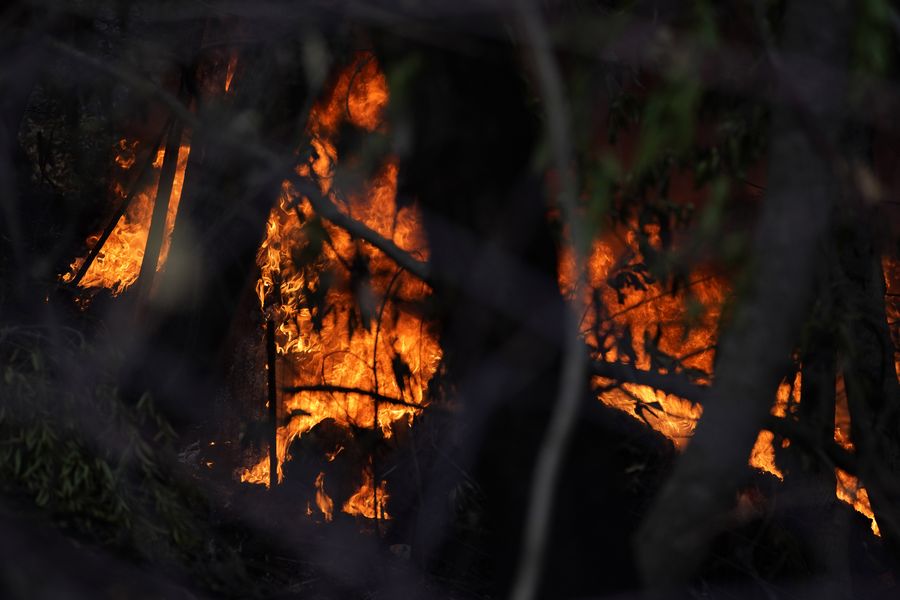 A firefighter tries to put out a fire in Santa Clarita, the U.S. state of California, Oct. 24, 2019. (Xinhua/Li Ying)