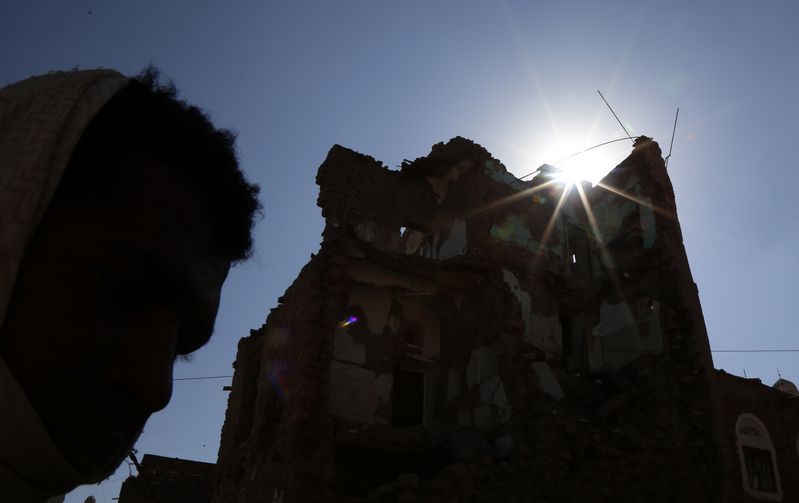 A man walks past a house destroyed by an airstrike in Sanaa, Yemen, Oct. 26, 2019. (Photo by Mohammed Mohammed/Xinhua)