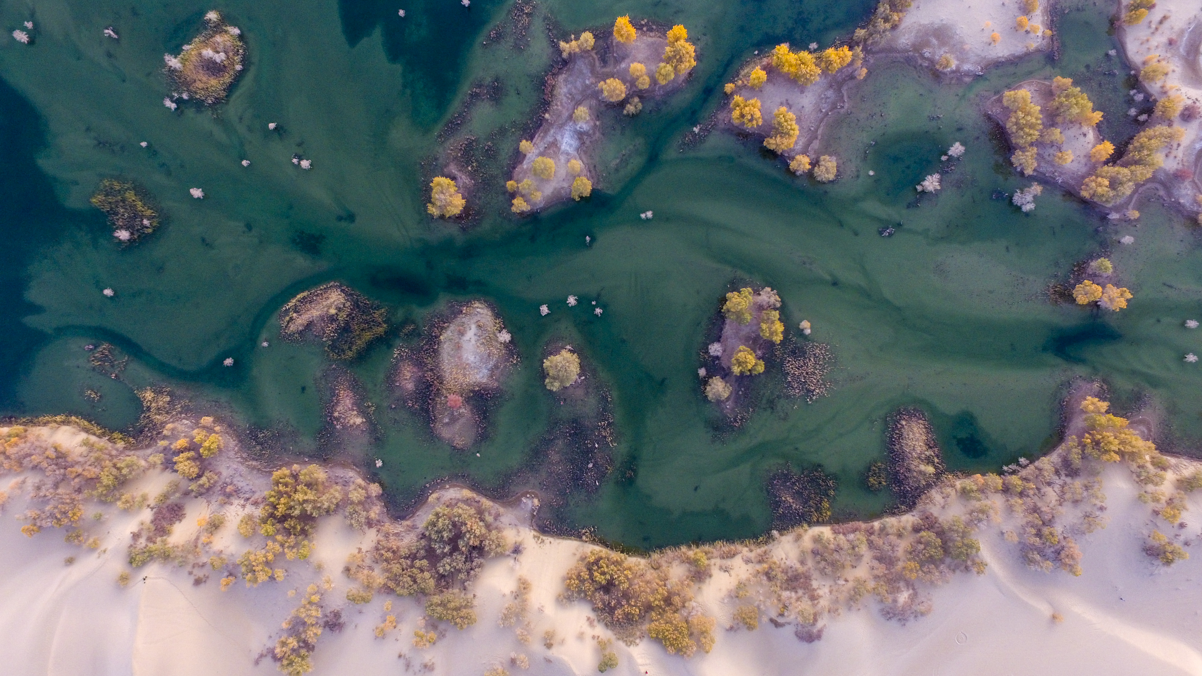 Aerial photo taken on Oct. 25, 2019 shows an autumn view of Lop Lake in Yuli County, northwest China's Xinjiang Uygur Autonomous Region. (Xinhua/Zhao Ge)