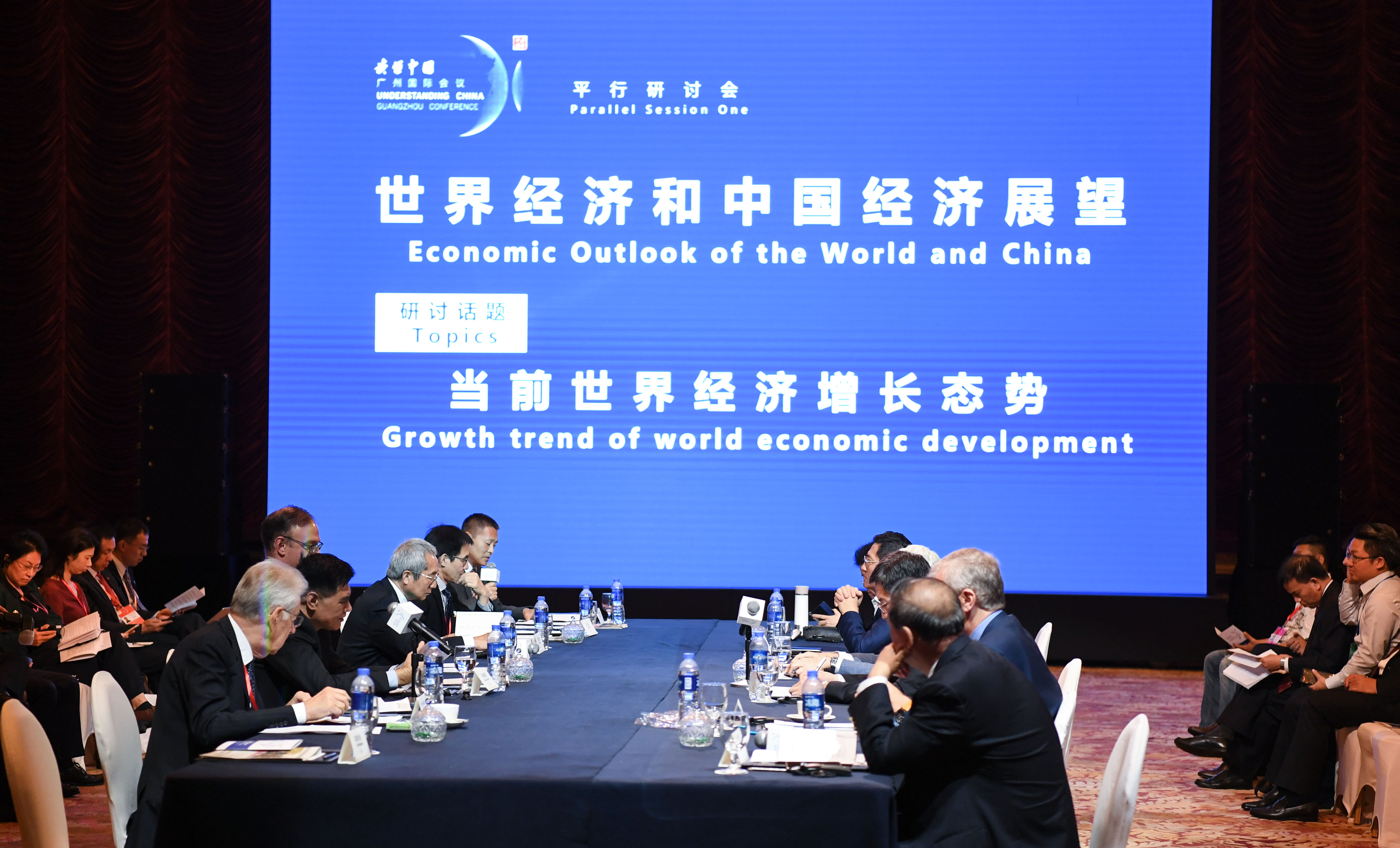 Participants attend the parallel session "Economic Outlook of the World and China" as part of the Understanding China Conference in Guangzhou, capital of south China's Guangdong Province, Oct. 26, 2019. (Xinhua/Deng Hua)