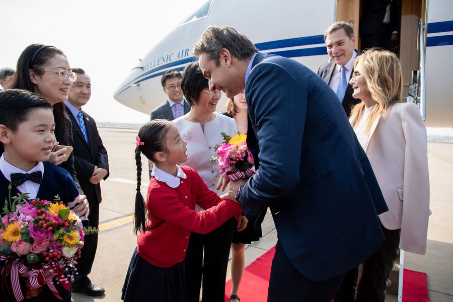 Greek Prime Minister Kyriakos Mitsotakis arrives in Shanghai, east China, Nov. 2, 2019, to attend the upcoming second China International Import Expo (CIIE). (Xinhua/Gao Feng)