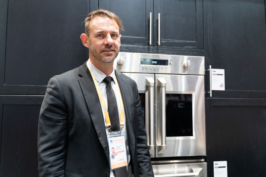 Attila Krizsan of GE Appliances poses for a photo at the Sci-tech Life exhibition area during the second China International Import Expo (CIIE) in Shanghai, east China, Nov. 7, 2019. (Xinhua/Zhang Xiaoyu)