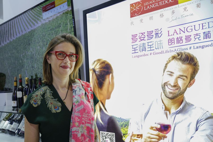 Sybille Dubois-Fontaine, directer-genaral of Comite France Chine, poses for a photo at the France pavilion during the second China International Import Expo (CIIE) in Shanghai, east China, Nov. 7, 2019. (Xinhua/Zhang Yuwei)