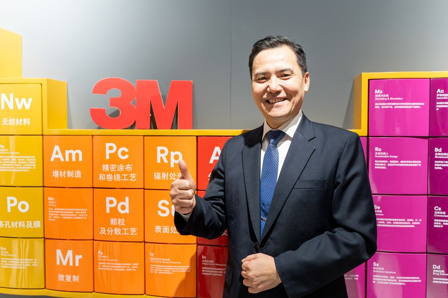 Jeffrey Tung, head of R&D of 3M (China), poses for a photo at the Sci-tech Life exhibition area during the second China International Import Expo (CIIE) in Shanghai, east China, Nov. 7, 2019. (Xinhua/Zhang Xiaoyu)