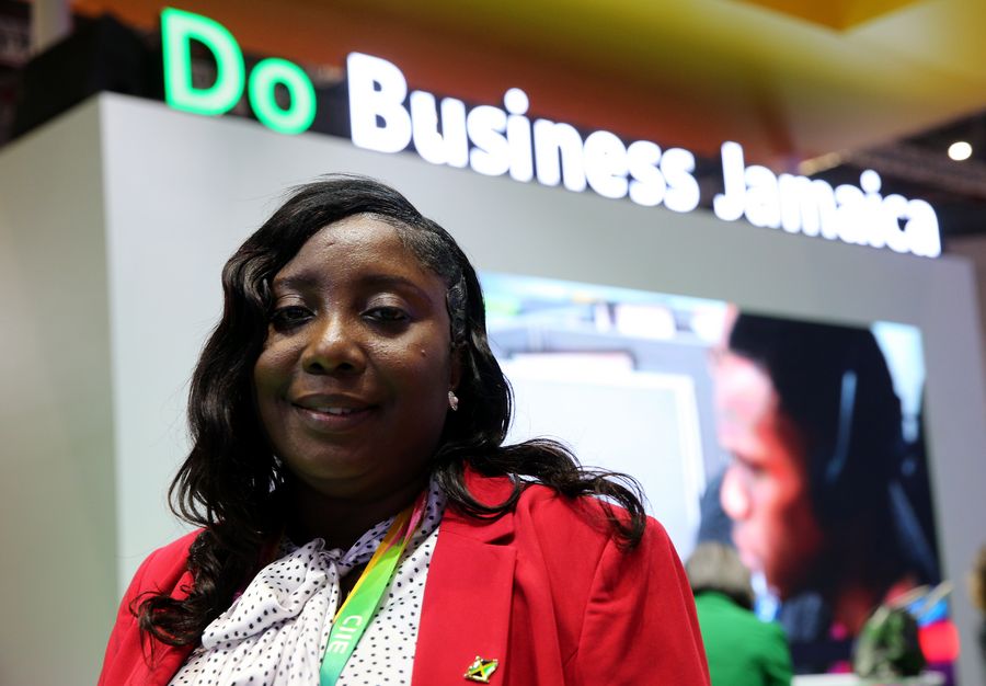 Yolando Gibson from Jamaica visits the second China International Import Expo (CIIE) in Shanghai, east China, Nov. 6, 2019. (Xinhua/Zhang Chuanqi)