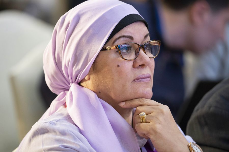 A guest attends the consensus conference for the second Hongqiao International Economic Forum on China's 70-year Development and the Building of a Community with a Shared Future for Mankind in Shanghai, east China, Nov. 6, 2019. (Xinhua/Cai Yang)