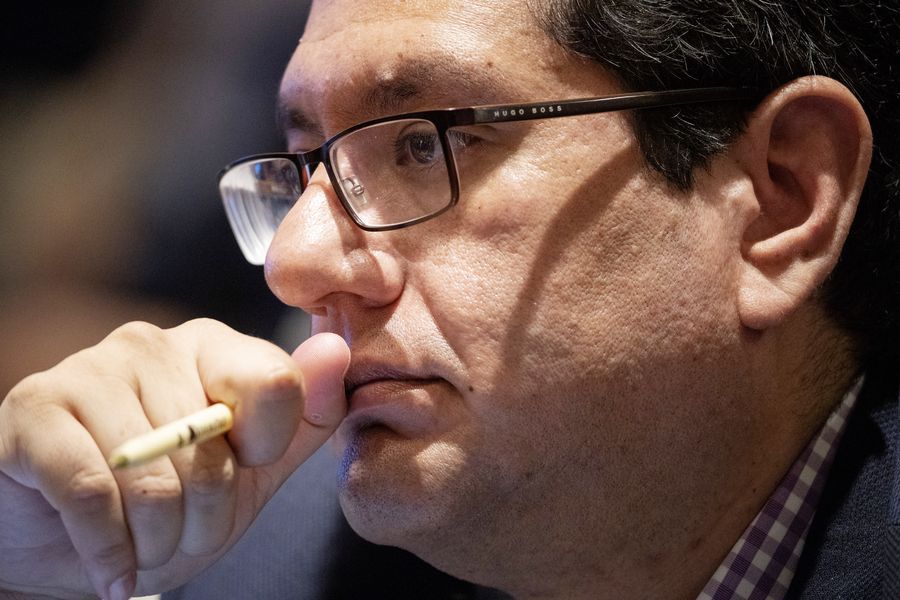 Ernesto Velasco Sanchez, associate researcher of Mexican GIGAPP, attends a seminar on the topic "Consultation, Contribution, Shared Benefits and Global Governance" during the second Hongqiao International Economic Forum on China's 70-year Development and the Building of a Community with a Shared Future for Mankind held in Shanghai, east China, Nov. 6, 2019. (Xinhua/Cai Yang)