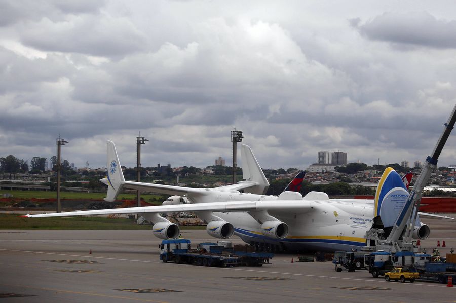 File photo shows the world' s largest cargo plane Antonov An-225 Mriya stands on the tarmac of Guarulhos International Airport, in the outskirts of Sao Paulo, Brazil. (Xinhua/Rahel Patrasso)