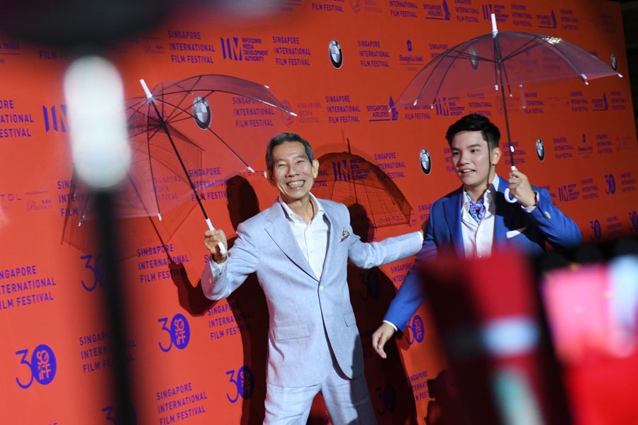 Members of the film "Wet Season" actors Yang Shi-bin (L) and Koh Jia Ler attend the 30th Singapore International Film Festival (SGIFF) ceremony in Singapore's Capitol Theatre on Nov 21, 2019. (Xinhua/Then Chih Wey)