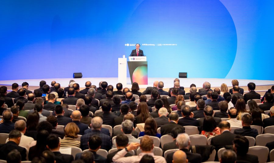 Chinese Vice President Wang Qishan addresses the opening ceremony of the 2019 New Economy Forum in Beijing, capital of China, Nov. 21, 2019. (Xinhua/Zhai Jianlan)