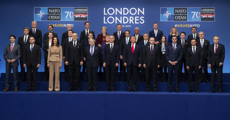 NATO (North Atlantic Treaty Organisation) leaders pose for a group photo at the NATO Summit in London, Britain, on Dec. 4, 2019. (Xinhua/Han Yan)