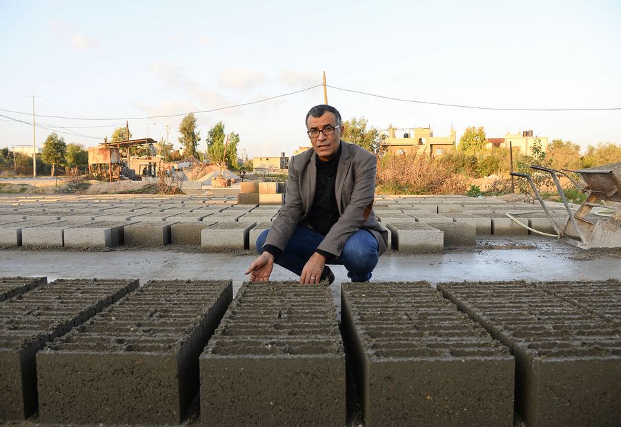 Husam al-Aqraa, 46, burns the waste and uses the ash to produce building blocks, which are lighter in weight than the ordinary ones.