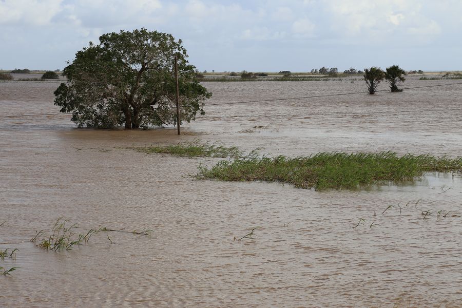 A vast field is flooded along the National Road No. 6 (EN6) in the Pungue River Basin, Mozambique, March 23, 2019. After the country was hit by Tropical Cyclone Idai since last week, the rise of the water level of river Pungue has caused floods and massive destruction. (Xinhua/Nie Zuguo)