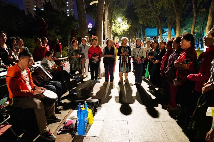 Chinese aunties sing Katyusha, a Soviet Union folk song, in Stalin Park. Photo by Wang Jianwei/Xinhua