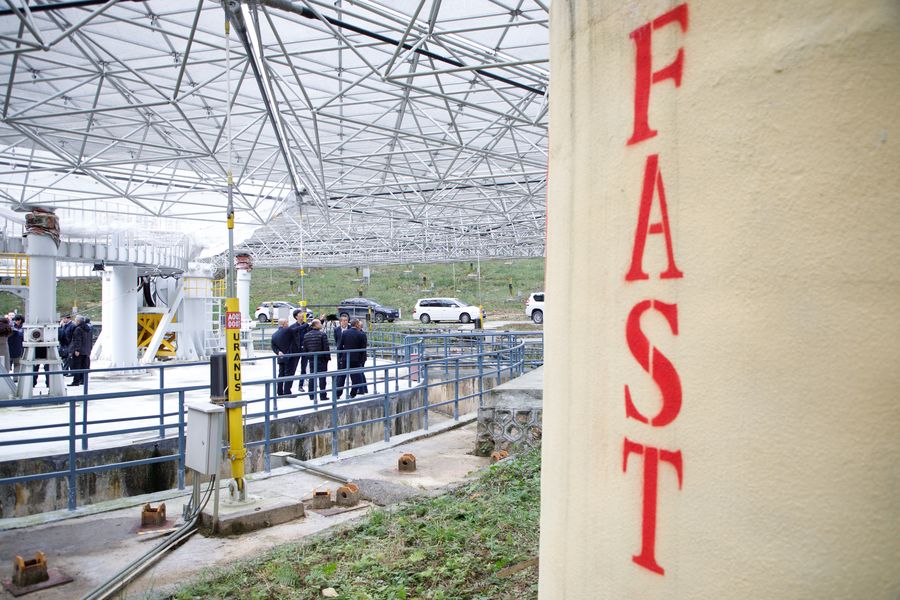 The Five-hundred-meter Aperture Spherical radio Telescope (FAST) is a single-dish telescope with a diameter of half a kilometer and a receiving area equivalent to about 30 football fields. It is located in a naturally deep and round karst depression in southwest China's Guizhou Province.