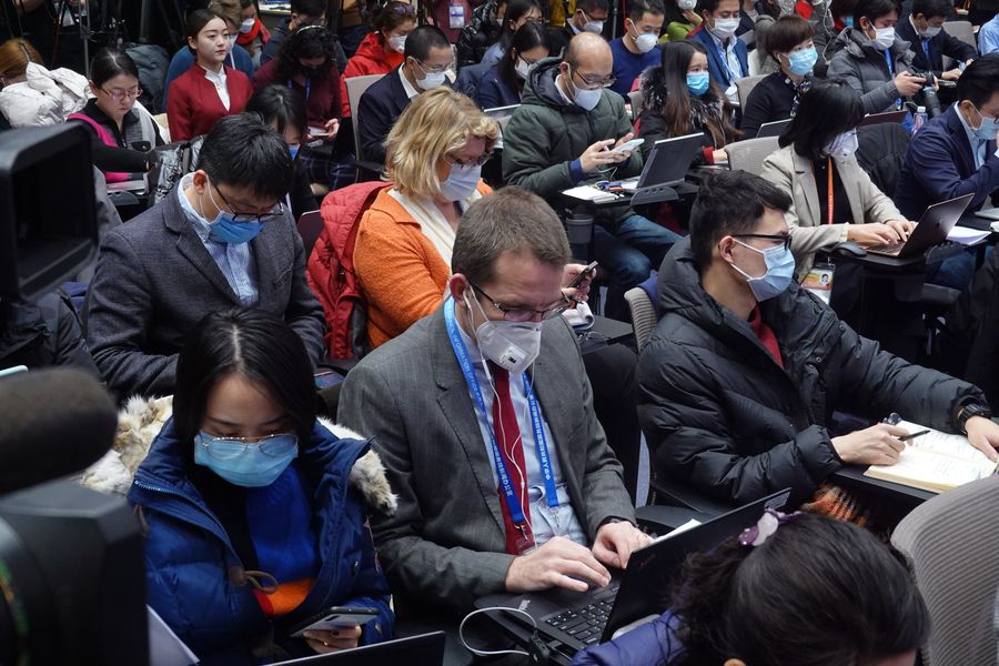 Journalists attend a press conference on the prevention and control of the novel coronavirus outbreak held by the State Council Information Office, in Beijing, capital of China, on Jan. 26, 2020. (Xinhua/Cai Yang)