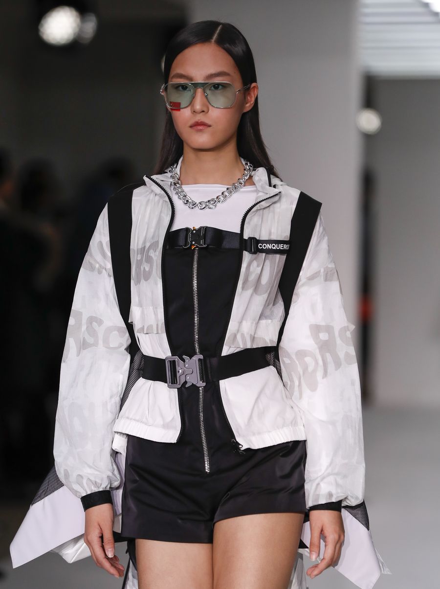 A model walks the runway at On|Off Presents... catwalk show during the London Fashion Week in London, Britain. (Xinhua/Han Yan)