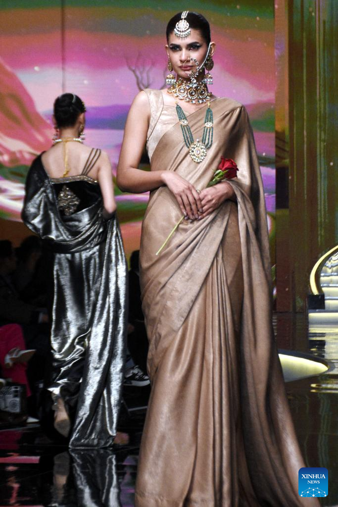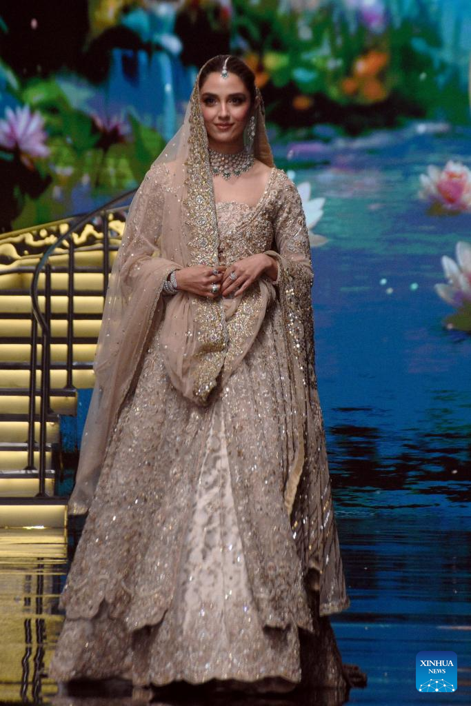 Models present creations during the Hum Bridal Couture Week fashion show in Lahore, Pakistan on Dec. 20, 2025. (Photo by Sajjad/Xinhua)