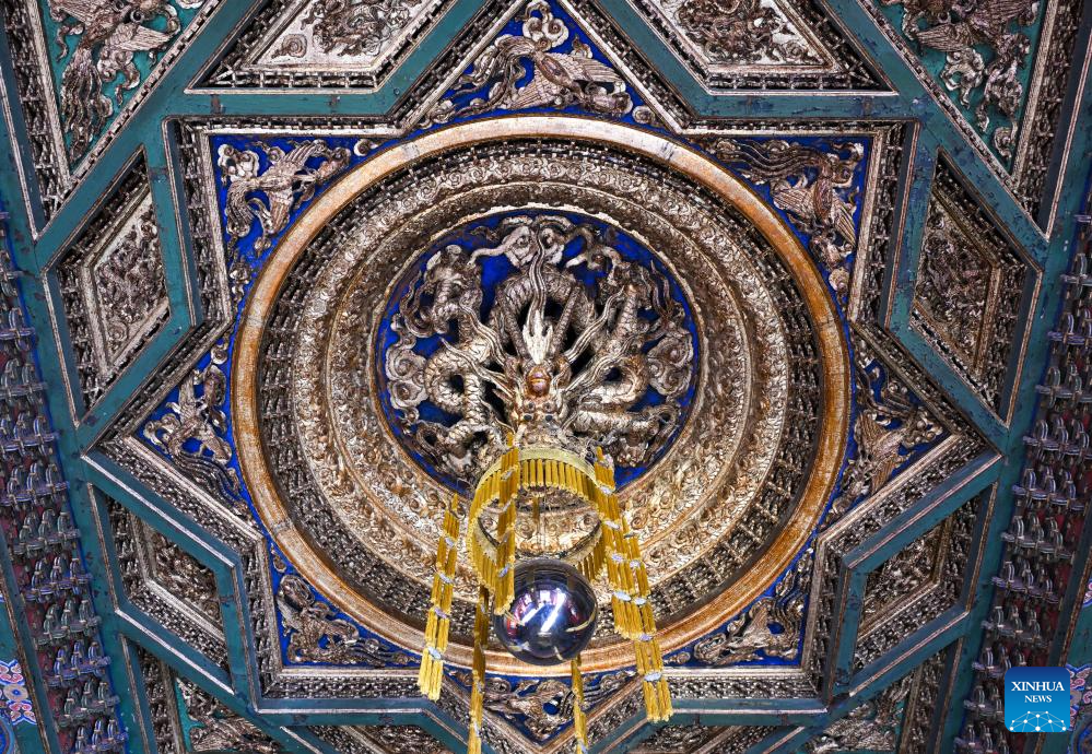 This photo taken on Dec. 25, 2025 shows a caisson ceiling of the Hall of Mental Cultivation (Yangxin dian) at the Palace Museum in Beijing, capital of China. After nearly a decade of comprehensive renovation, the Hall of Mental Cultivation reopened to the public on Friday. (Xinhua/Jin Liangkuai)