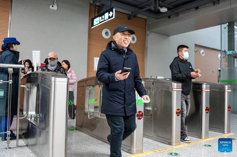 Citizens enter the Quancheng Park Station of Jinan Subway Line 4, in Jinan, east China's Shandong Province, Dec. 27, 2025. China's first subway line passing through a karst spring area began operation on Saturday in Jinan, marking an engineering breakthrough that balances urban transit demands with the protection of natural water resources.