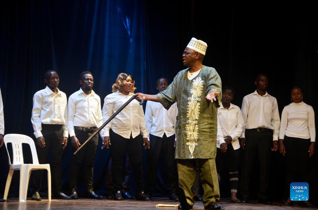 Artists perform at the Uganda National Cultural Center during an event to mark World Theatre Day in Kampala, Uganda, March 27, 2022. World Theatre Day is marked annually on March 27. (Photo by Nicholas Kajoba/Xinhua)