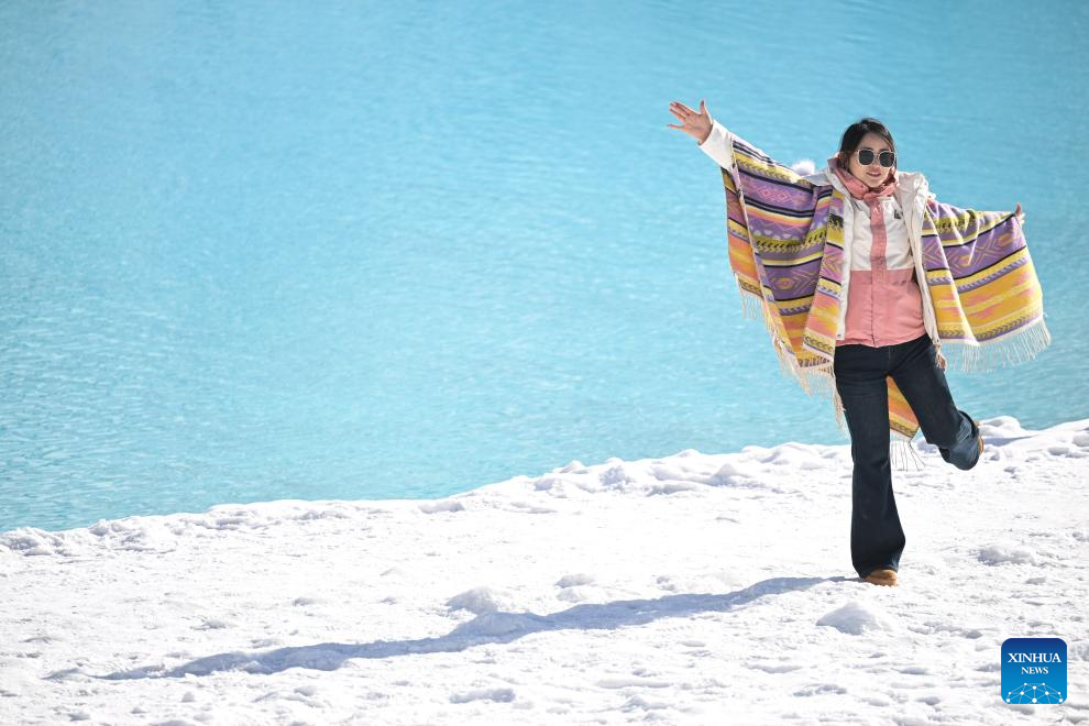 A tourist poses for photos at Mt. Gangshika scenic area in Menyuan Hui Autonomous County, northwest China's Qinghai Province, Dec. 25, 2025. The snow-covered Mt. Gangshika, the highest peak in the eastern section of the Qilian Mountains, attracts lots of tourists in winter with its magnificent scenery. (Xinhua/Qi Zhiyue)