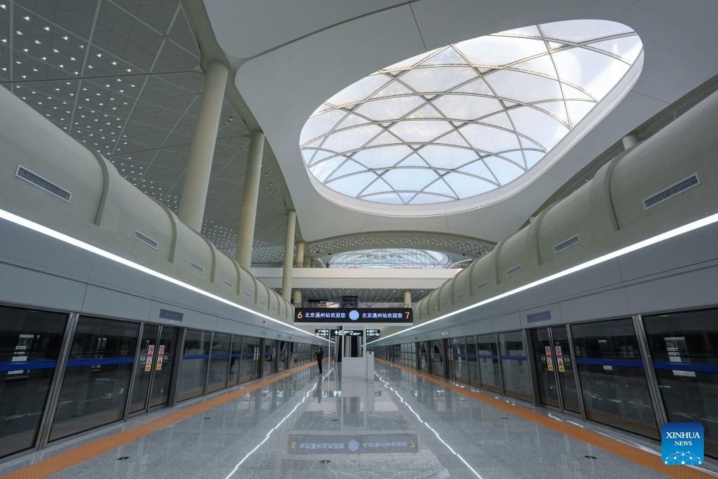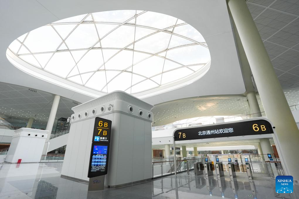 This photo taken on Dec. 25, 2025 shows an interior view of the Beijing Tongzhou Railway Station in Beijing, capital of China. The railway station, located in the comprehensive transportation hub of Beijing's sub-center Tongzhou District, will be officially put into operation on Dec. 30. (Xinhua/Ju Huanzong)