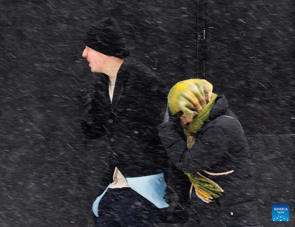 People walk on a street during a snowy day in Toronto, Canada, on Dec. 26, 2025. (Photo by Zou Zheng/Xinhua)
