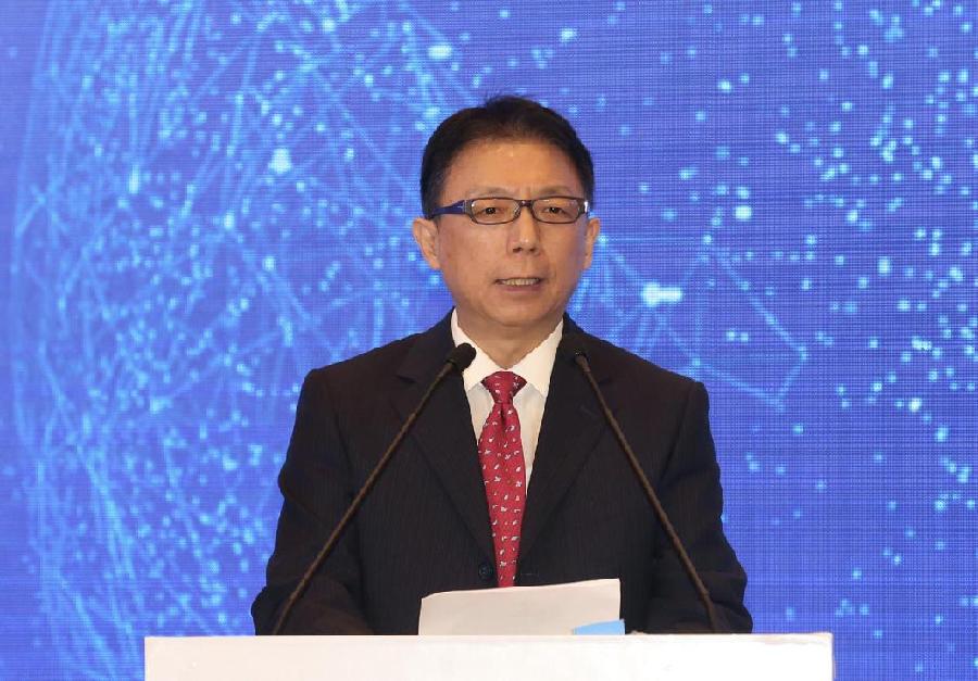 Zhou Shuchun, publisher and editor-in-chief of China Daily, delivers a speech at a ministerial forum themed "Bridging the Digital Divide" in Wuzhen, East China's Zhejiang province on Nov 8, which serves as a sub-forum of the fifth World Internet Conference. (Photo by Xu Jingxing /chinadaily.com.cn)
