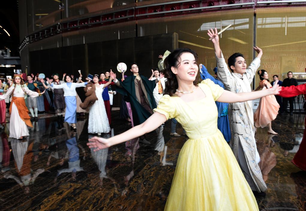 12月22日,演员在国家大剧院公共空间与观众互动。新华社记者 罗晓光 摄